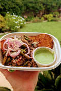• Our containers are compostable and microwave-safe, though we recommend removing lids and reheating in glass or ceramic for optimal quality