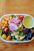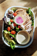 We have partnered with World Centric to use compostable, sustainable packaging for all our meals. You may dispose of all meal packaging directly in the green compost bin. We also have a reusable bag and ice pack policy to minimize waste. Our commitment to the environment also includes partnering with organizations to plant a tree for every meal purchased.