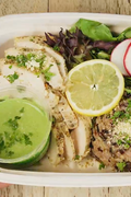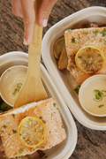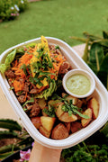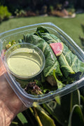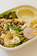 • Our containers are compostable and microwave-safe, though we recommend removing lids and reheating in glass or ceramic for optimal quality