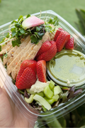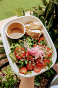 We have partnered with World Centric to use compostable, sustainable packaging for all our meals. You may dispose of all meal packaging directly in the green compost bin. We also have a reusable bag and ice pack policy to minimize waste. Our commitment to the environment also includes partnering with organizations to plant a tree for every meal purchased.